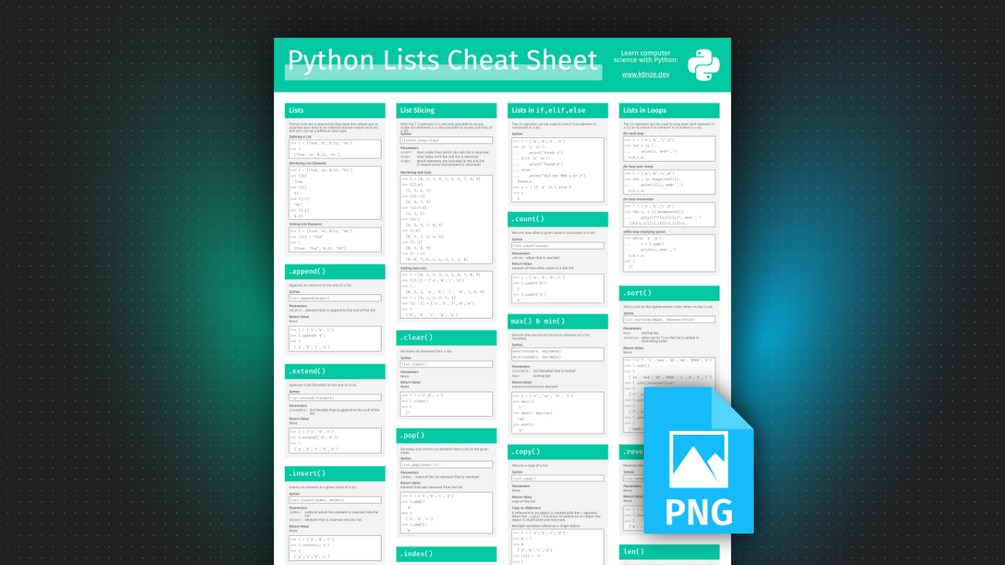 FREE Python Lists Cheat Sheet (PNG)